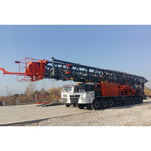Jereh truck/trailer mounted drilling rig is mechanically and hydraulically driven. The power system, drawworks, mast, travelling system and transmission mechanism of the drilling rig are mounted on the self-propelled chassis, which improves the moving efficiency greatly. Now, Jereh truck mounted drilling rig series cover the drilling depth from 1000m to 4000m and maximum static load from 900kN to 2250kN, featuring high operation load, reliable performance, excellent off-road performance, convenient movement and low operation/moving cost, and suitable for drilling operations in shallow and middle deep wells. Besides, drilling rigs for arctic, desert and highland applications are available.
